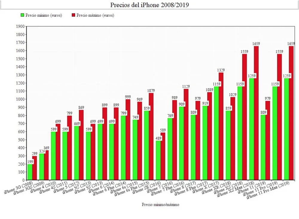 El 12 de septiembre de 2017 lanzan el iPhone X, con un precio de $999. Años posteriores han sacado modelos que superan la barrera de los $1000.