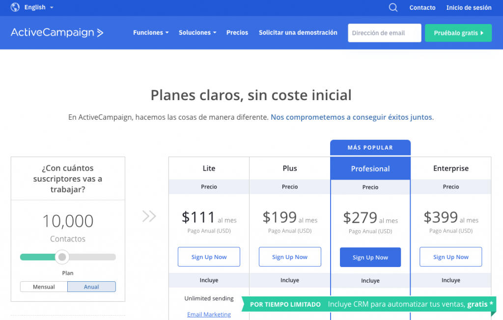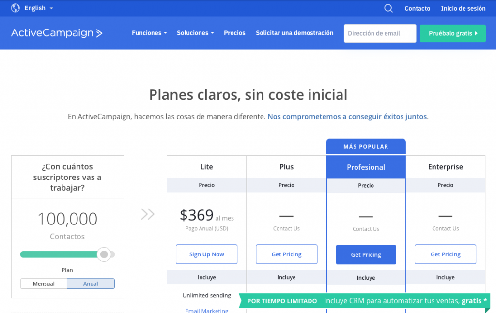 Puedes entrar a la web de ActiveCampaign, calcular exactamente cuánto te costará la herramienta y contratarla directamente sin tener que hablar con ventas.