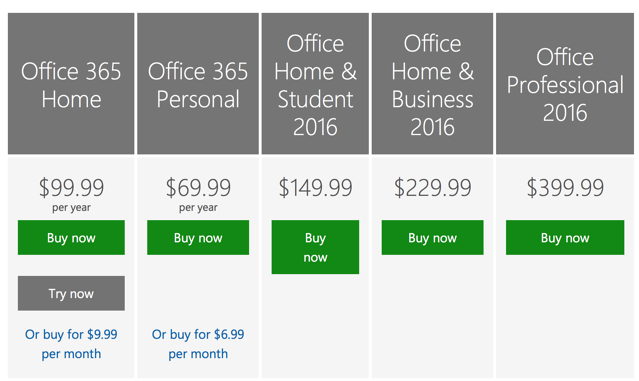 Por ejemplo, hace unos años la página de pricing de Microsoft Office 365 tenía este aspecto: